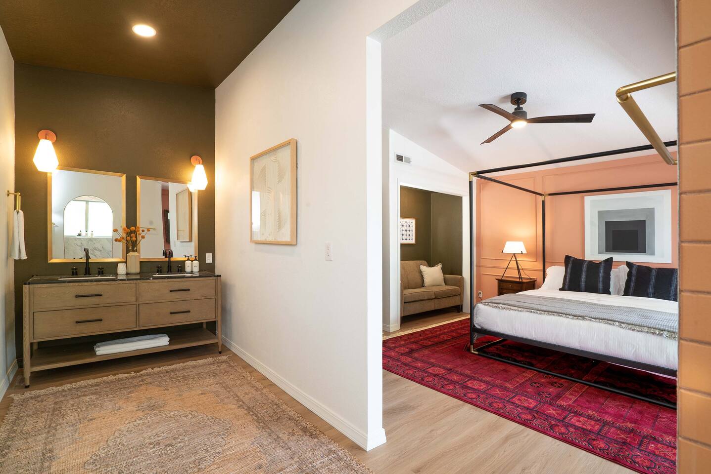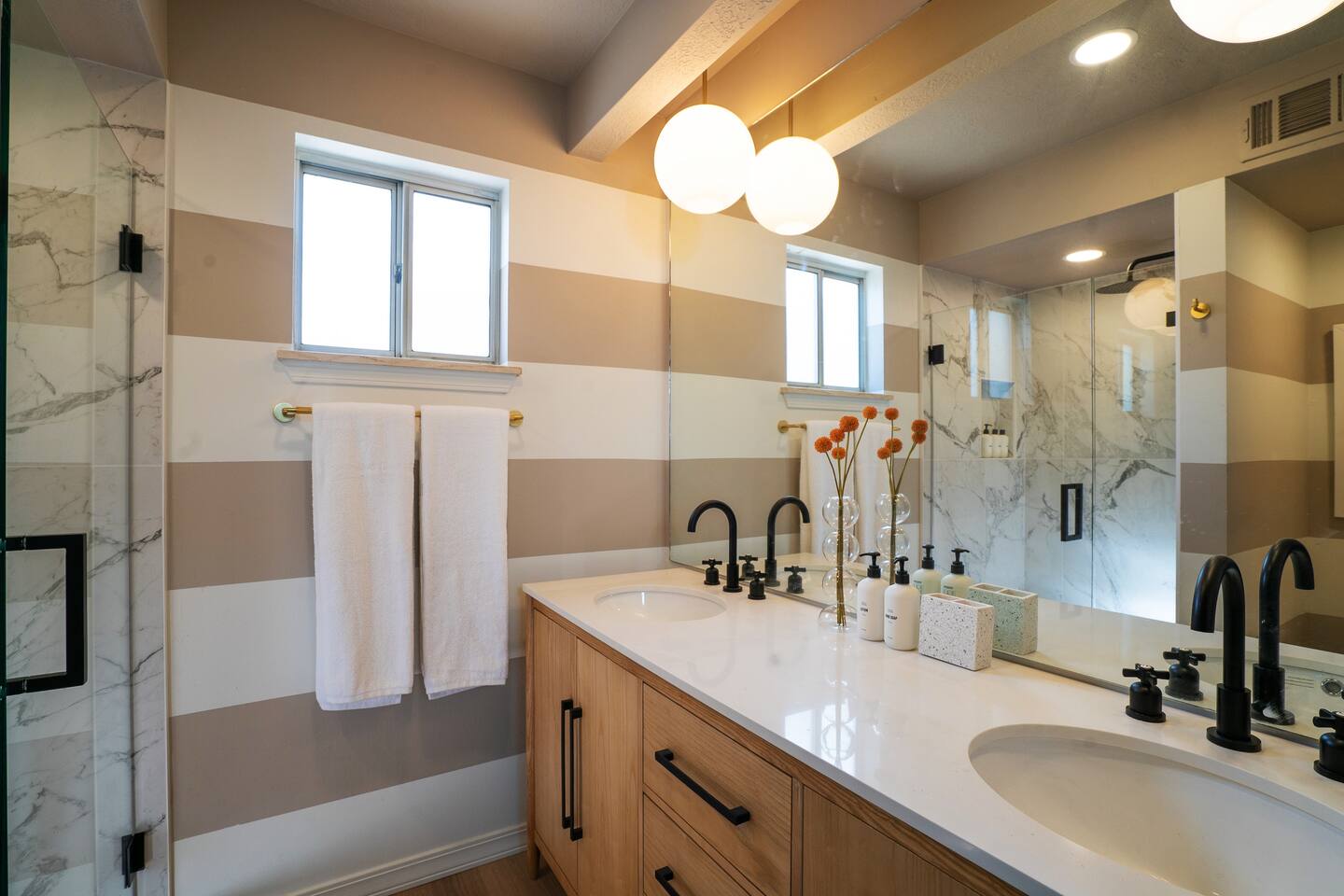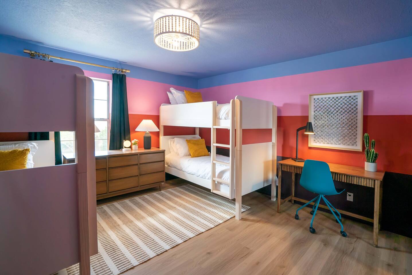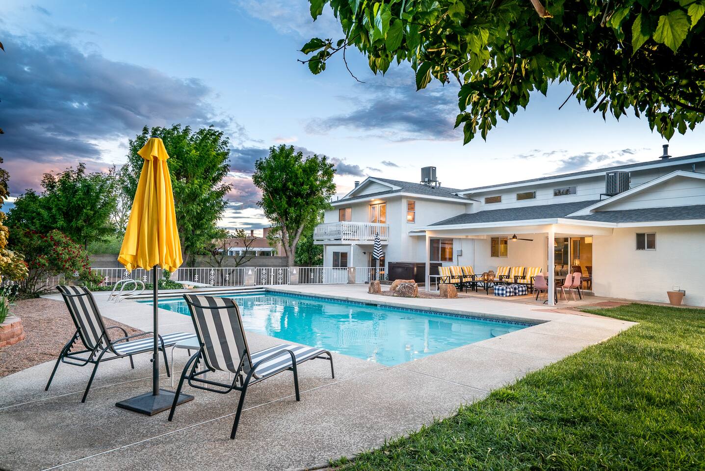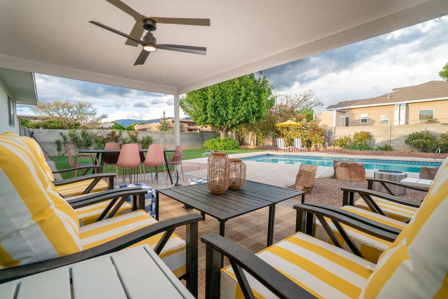 Step into Casa Blanca, a sophisticated 5-bedroom, 3.5-bathroom home spread over 3,550 sq ft on a split-level layout, offering both comfort and elegance. Our home boasts a plethora of amenities for a perfect stay: ➤ Year-round heated pool + hot tub ➤ Outdoor fire pit and BBQ area ➤ Multiple living areas with stylish décor ➤ Free high-speed WiFi ➤ State-of-the-art kitchen appliances ➤ Dedicated workspace ➤ Game room with pool table & ping pong table ➤ Private parking for multiple cars ➤ Air conditioning and ceiling fans in every room ➤ Self-check-in ➤ Pet-friendly, with a fully-fenced back yard ➤ Kid-friendly, with kids books and toys, a kids table, and play kitchen set We also have optional add-ones for an additional fee: ➤Early Check-in, $50 (depending on availability of cleaning crew) ➤Late Check-out $50 (depending on availability of cleaning crew) ➤Blow-up large out door projector screen for epic movie nights under the stars! $50 The highlight of our home is the private, heated pool and hot tub: ➤ Open all year, perfect for any season ➤ Outdoor living and dining area for relaxation or entertaining ➤ Fire pit for cozy evenings ➤Large sand pit with kids toys We ensure you have everything you need for a luxurious outdoor living experience: ➤ Full outdoor kitchen with BBQ grill ➤ Comfortable seating for large groups ➤ Beautifully landscaped gardens ➤ Light-up corn hole, giant Jenga, and giant connect 4 Sleeping Arrangements: Indulge in the ultimate comfort in our well-appointed bedrooms. All bedrooms include Helix Hybrid mattresses, ceiling fans, and USB charging ports. ➤ Master Suite: King bed with plush linens, ensuite with double vanity, private balcony ➤ Bedroom 2: King bed, stylish décor ➤ Bedroom 3: Two twin beds, ideal for children or singles ➤ Bedrooms 4 & 5: Queen and king beds, beautifully furnished for a restful night's sleep All bathrooms include adjustable rain shower heads, hand-held shower wands, body wash, shampoo, conditioner, lotion, feminine hygiene products, and tissues. Living & Dining Room: As you enter through the front door you enter into the main level and a fun yet stylish formal living room with three full-sized sofas perfect for long conversations, catching up, or group meetings. Across from the front door and next to the living room is the Formal Dining room with seating for 10. Kitchen: Enjoy gourmet meals prepared in the chef’s kitchen equipped with modern appliances, including: ➤ Double oven, microwave, dishwasher, and large refrigerator ➤ Coffee station with complimentary supplies ➤ All essential cookware and high-quality kitchen utensils ➤ A wine or beverage fridge The kitchen has a breakfast table that can seat 4 and counter seating for 4 as well. There is also access to the backyard and pool through a slider door. Powder, Laundry & Workout Rooms: Down the hallway from the kitchen is a powder room to the left and a workout room/laundry room at the end. The workout room includes a wall of mirrors & several yoga mats perfect for a group session, as well as free weights, resistant bands, and kettlebells. The space is shared with two sets of washers and dryers. Luxurious Den Room: Down the stairs you are welcomed into the cozy Den space, complete with 7ft pool table, wet bar, and a sectional sofa facing the gas fireplace, complete with a wall-mounted flat screen TV. In this room you will find books, board games, and all the tools necessary to make your favorite cocktail. Behind the pool table is access to the backyard through beautiful French doors. Nearby Attractions: Your stay puts you in the perfect spot to explore Albuquerque and its surroundings: ➤ Vibrant downtown Albuquerque (10 minute drive) ➤ Sandia Mountains for hiking and skiing (5 minute drive) ➤ Albuquerque International Sunport (15 minute drive) Whether you’re looking for adventure or relaxation, our location offers easy access to the best attractions. Glowing Reviews From Guests Like You: "This was one of the best Airbnbs we've ever stayed in. It was super perfect just as described in the listing. Host Tiffany was amazing, very responsive, and clear communication. She understood our travel needs and made the necessary arrangements for our family group of 8. It's a beautiful home and well-organized. The location is very convenient and close proximity to all grocery and restaurant needs. Highly recommend this place if anyone traveling to Albuquerque" -Srikanth "I loved this house so much!! The decor was on point and I really felt like I could just live here forever. There was a lot of cool stuff for my 4-year-old son to do. Every space in the house was usable and so cozy! When we come back to the area we will be staying here for sure and hopefully, it will be in the summer so we can enjoy the pool. Thank you Tiffany!" -Desiree Book Your Stay Today! Ready for a luxurious escape in Albuquerque? Book our home today for an unforgettable experience. If you have any questions, don't hesitate to reach out through our Airbnb messaging. We're committed to making your stay as comfortable and enjoyable as possible. ALL GUESTS ARE REQUIRED TO SIGN A RENTAL AGREEMENT UPON BOOKING. Thank you, Your Host Tiffany