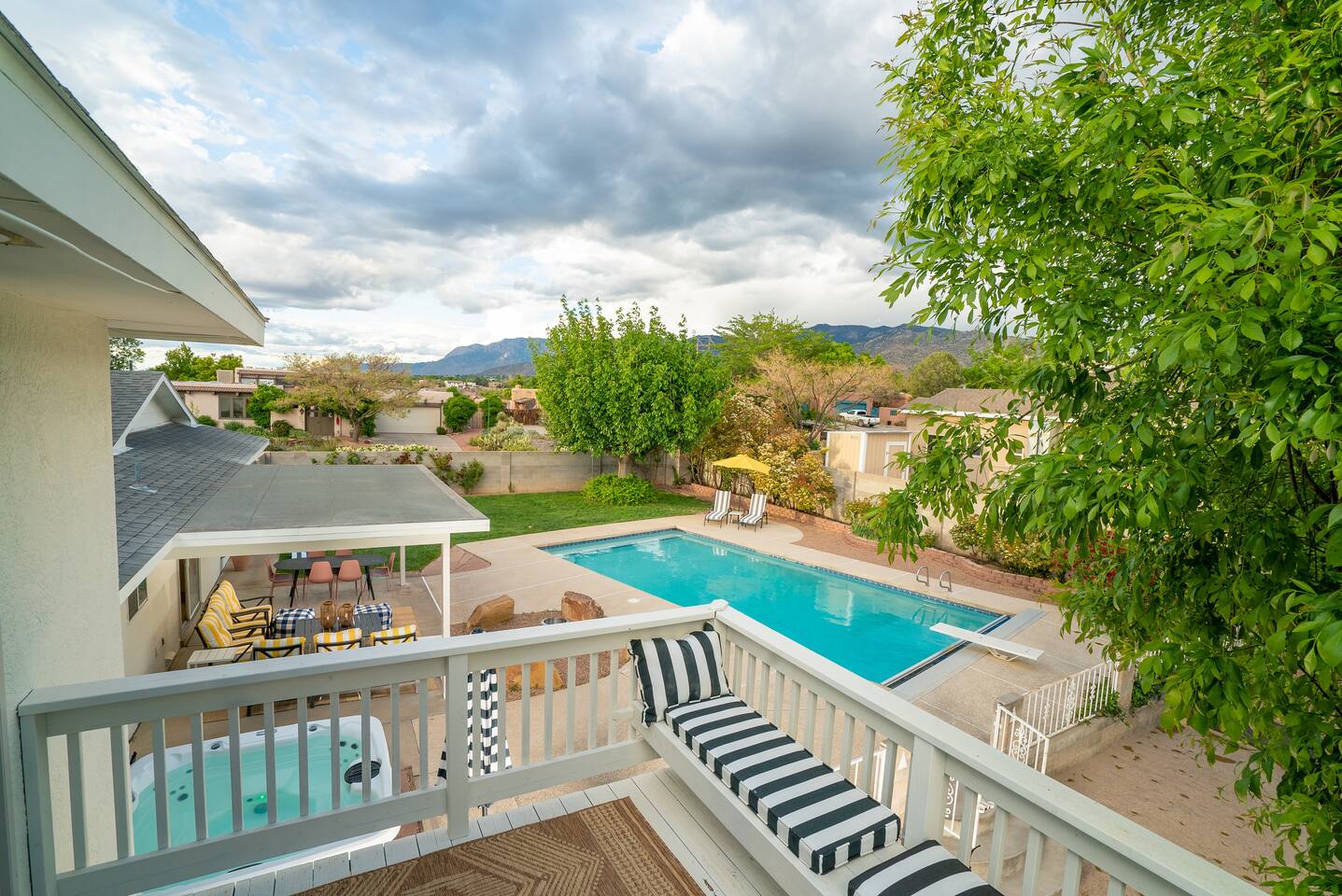 Escape to Casa Blanca, your luxurious 5-bedroom, 3.5-bathroom retreat in Albuquerque's prestigious Four Hills area. This 3,550 sq ft split-level home is the ideal getaway for families and groups, offering a perfect blend of sophisticated style and resort-style fun, just minutes from the Sandia Mountains and downtown. Your private back